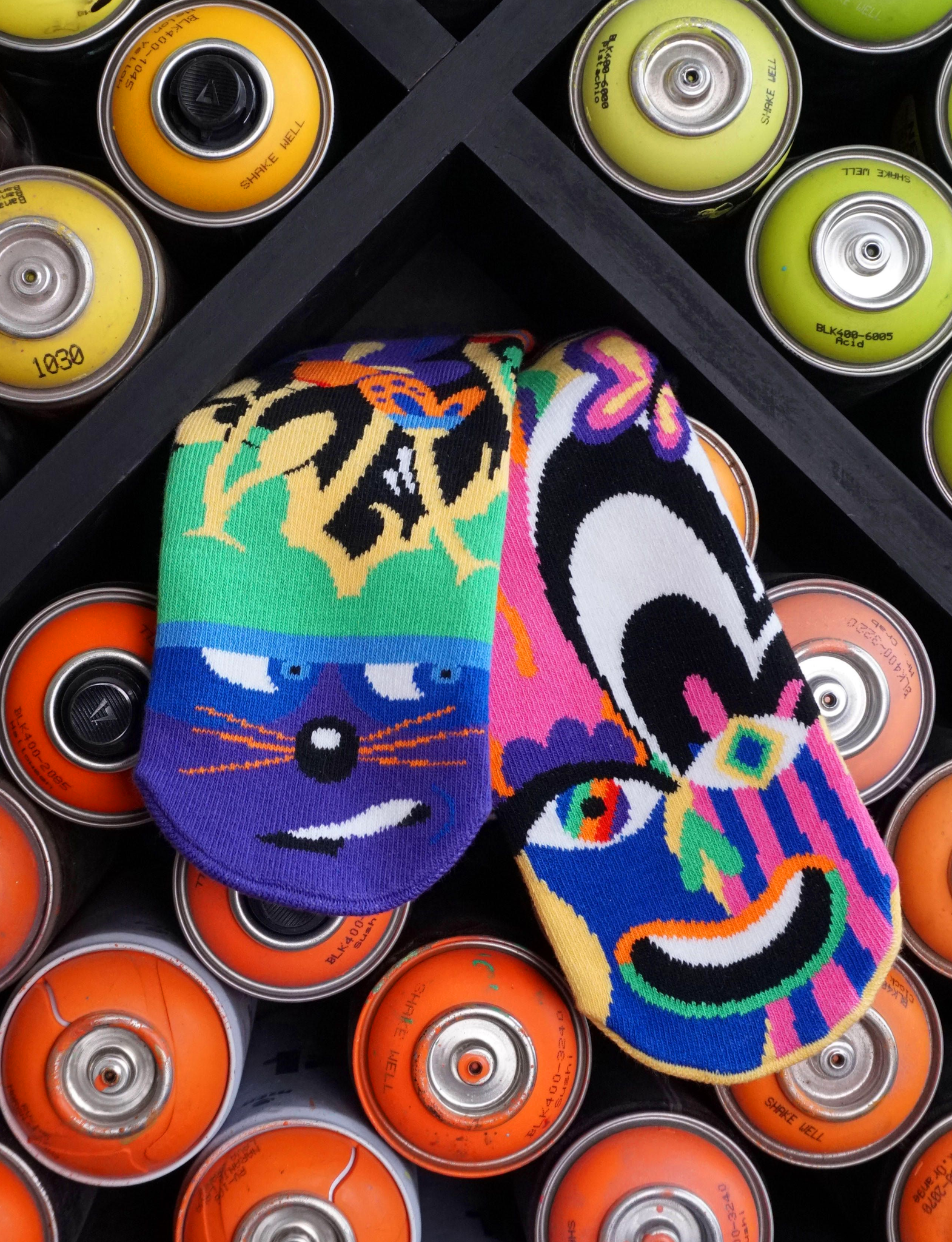 Meet Shy and Outgoing! Inspired by opposite personalities that are a perfect match, these bright maximalist socks are 1 of 3 delightful combos in the limited edition 2 Be You collection of Pals designed by Brooklyn “HEARTist” Jason Naylor.|