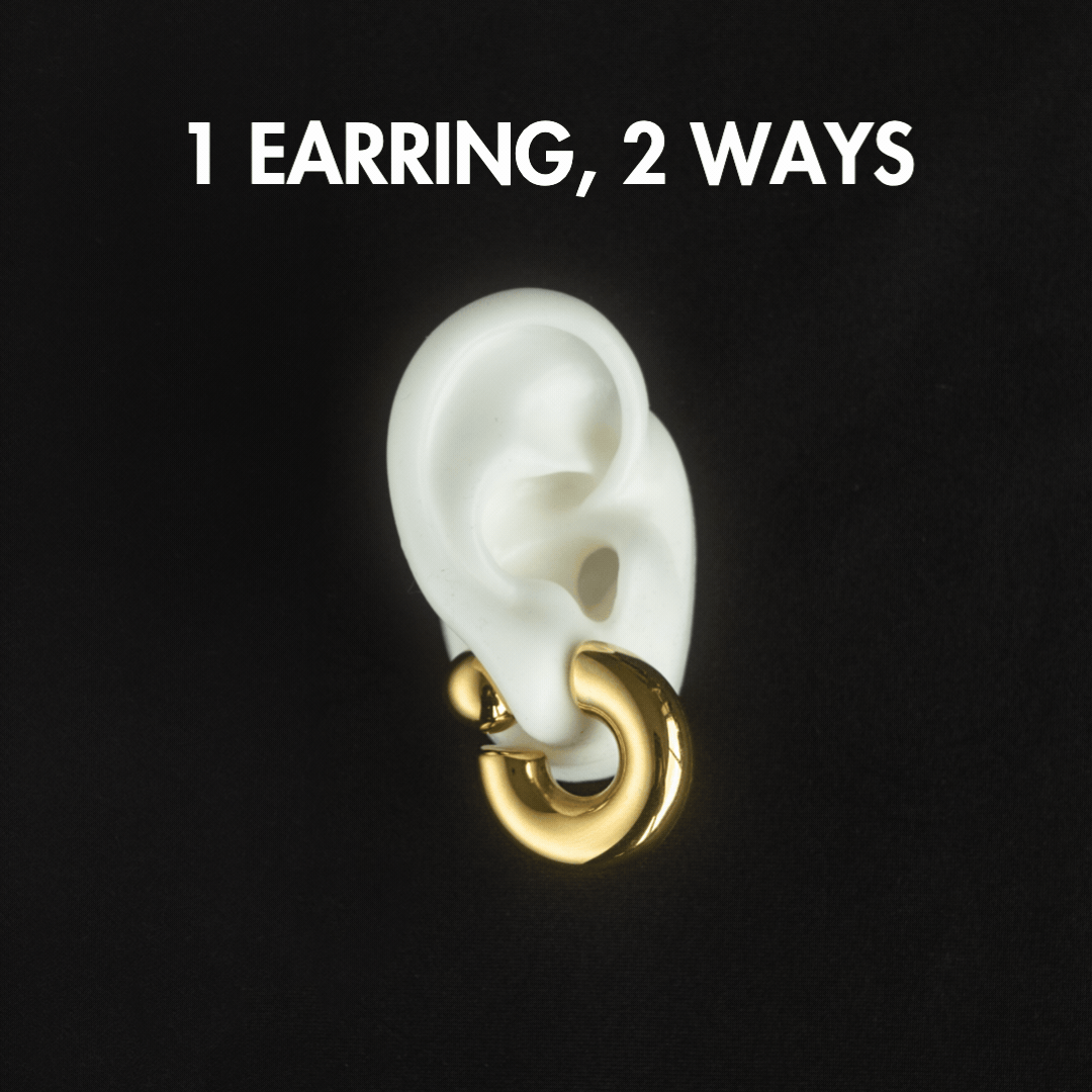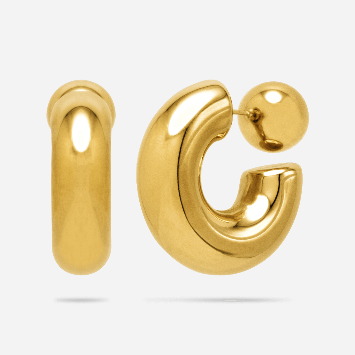 Unleash your bold style with our Adrian Bold C-Stud Earrings. Made from high-quality stainless steel and 18K gold plating, these chunky, detachable round ball earrings feature a unique C-shaped design that adds a touch of playfulness to your outfit. With a high-polish finish, these hollow earrings are sure to make a statement wherever you go. (Who says studs have to be boring?)