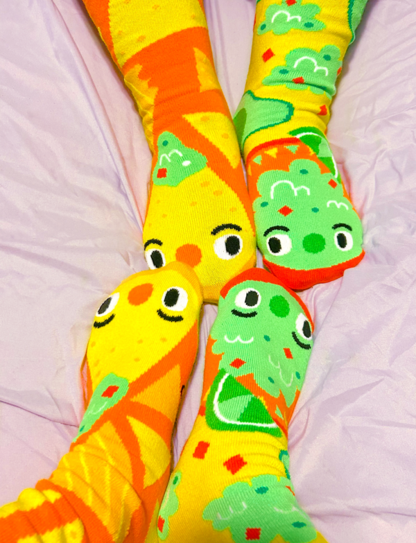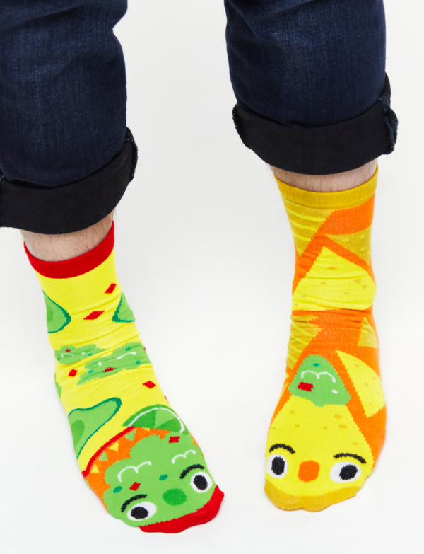 WE GO TOGETHER LIKE CHIPS AND GUAC! The perfect mismatch, this delicious pair of mismatched food sock palentines is part of the Taste Buds Collection designed by Michelle Romo (aka Crowded Teeth). |