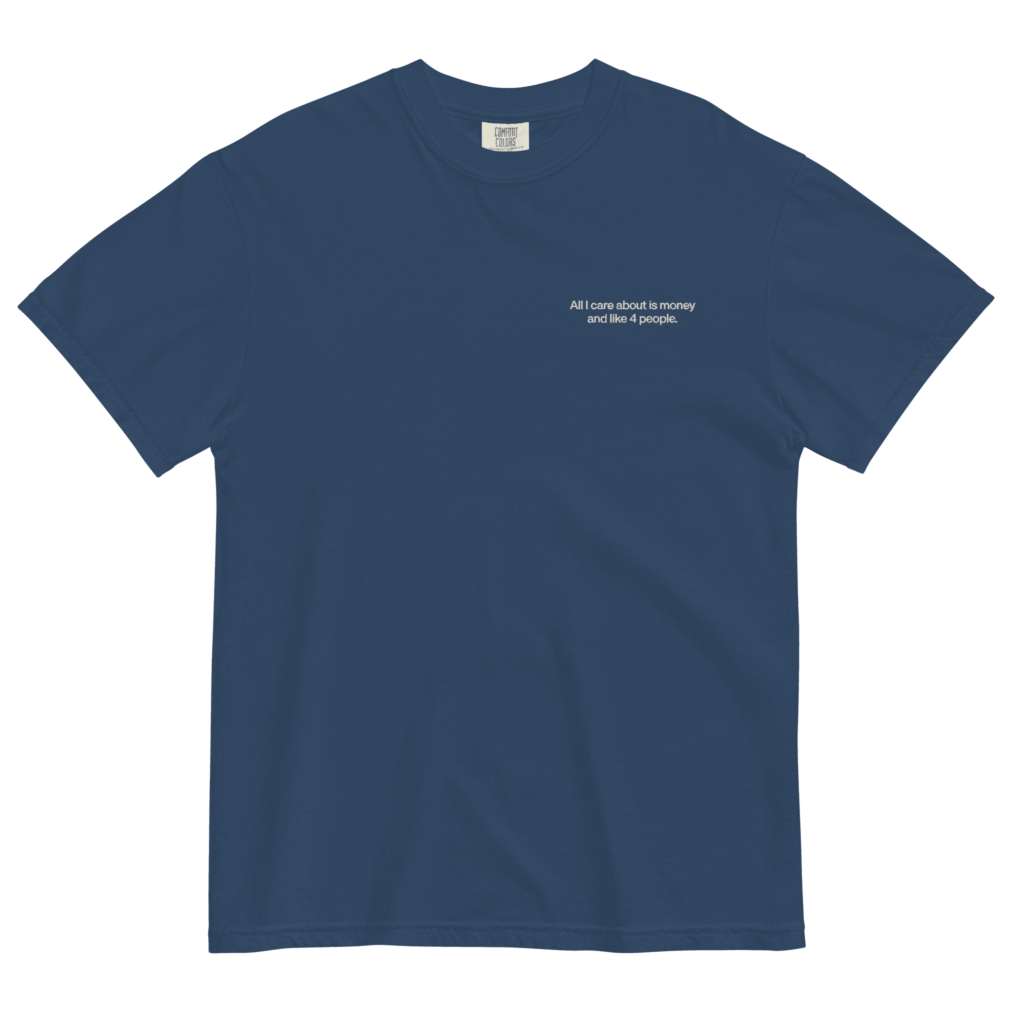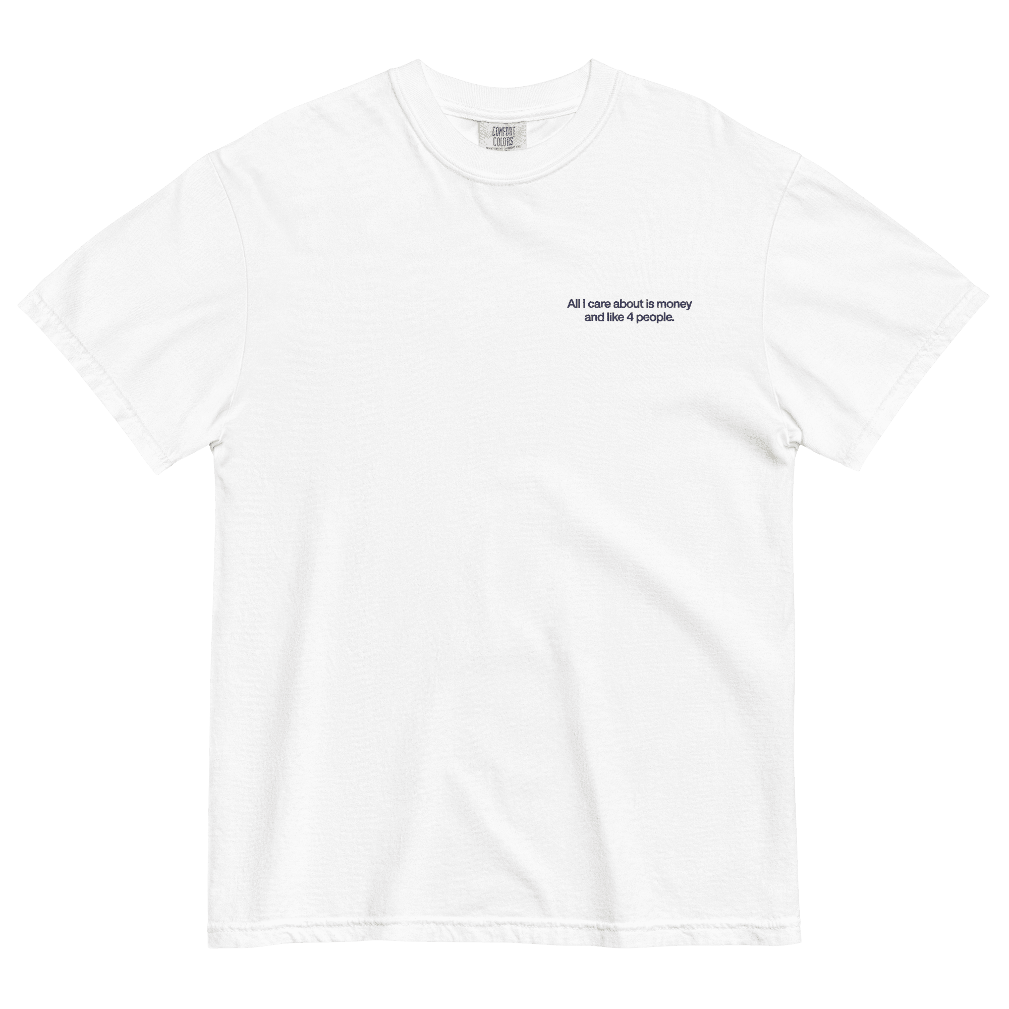 This embroidered shirt is perfect for the honest person who keeps it real! It features the phrase ‘All I care about is money and like 4 people’ in a bold embroidered design. Made from a comfy, 100% ring-spun cotton, this unisex t-shirt is a great gift or everyday staple.