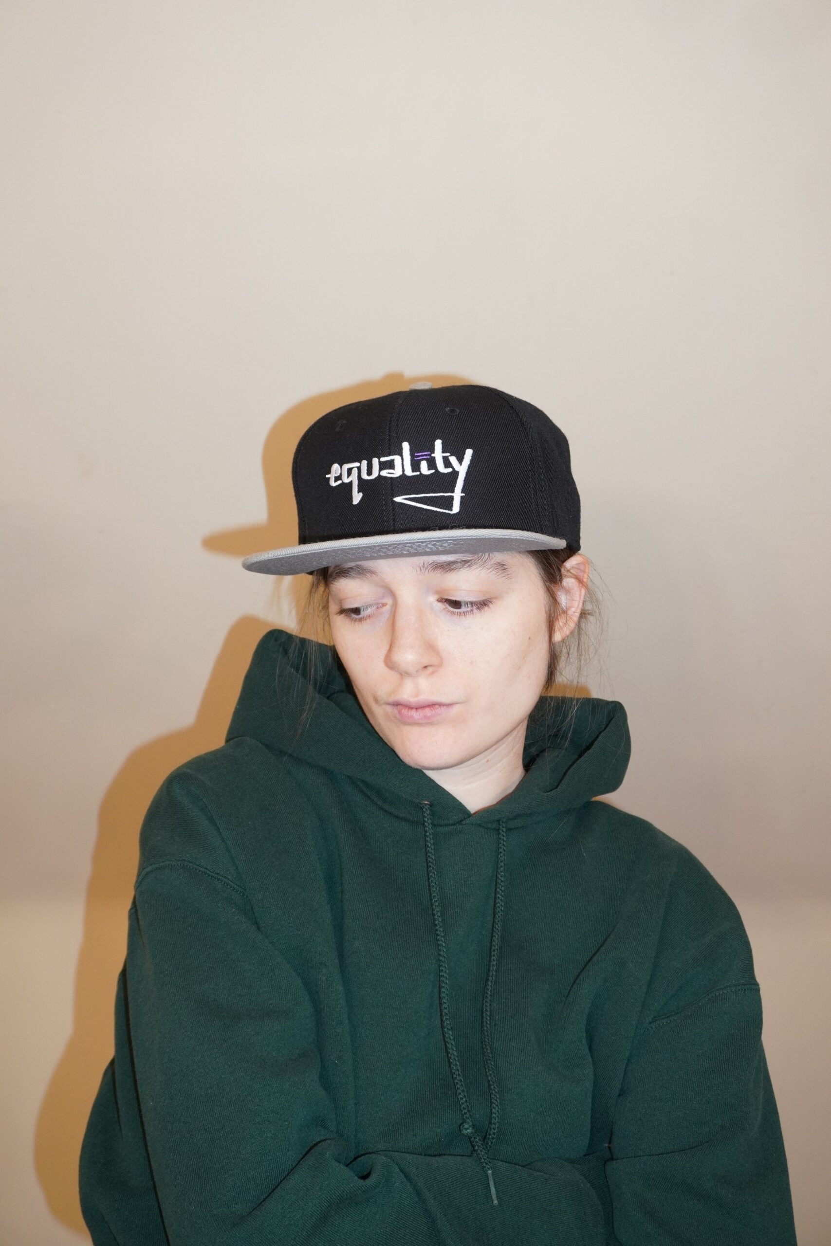 With this design, I mix hard and soft. A streetwear font with a sensitive social stance makes for a firm position.