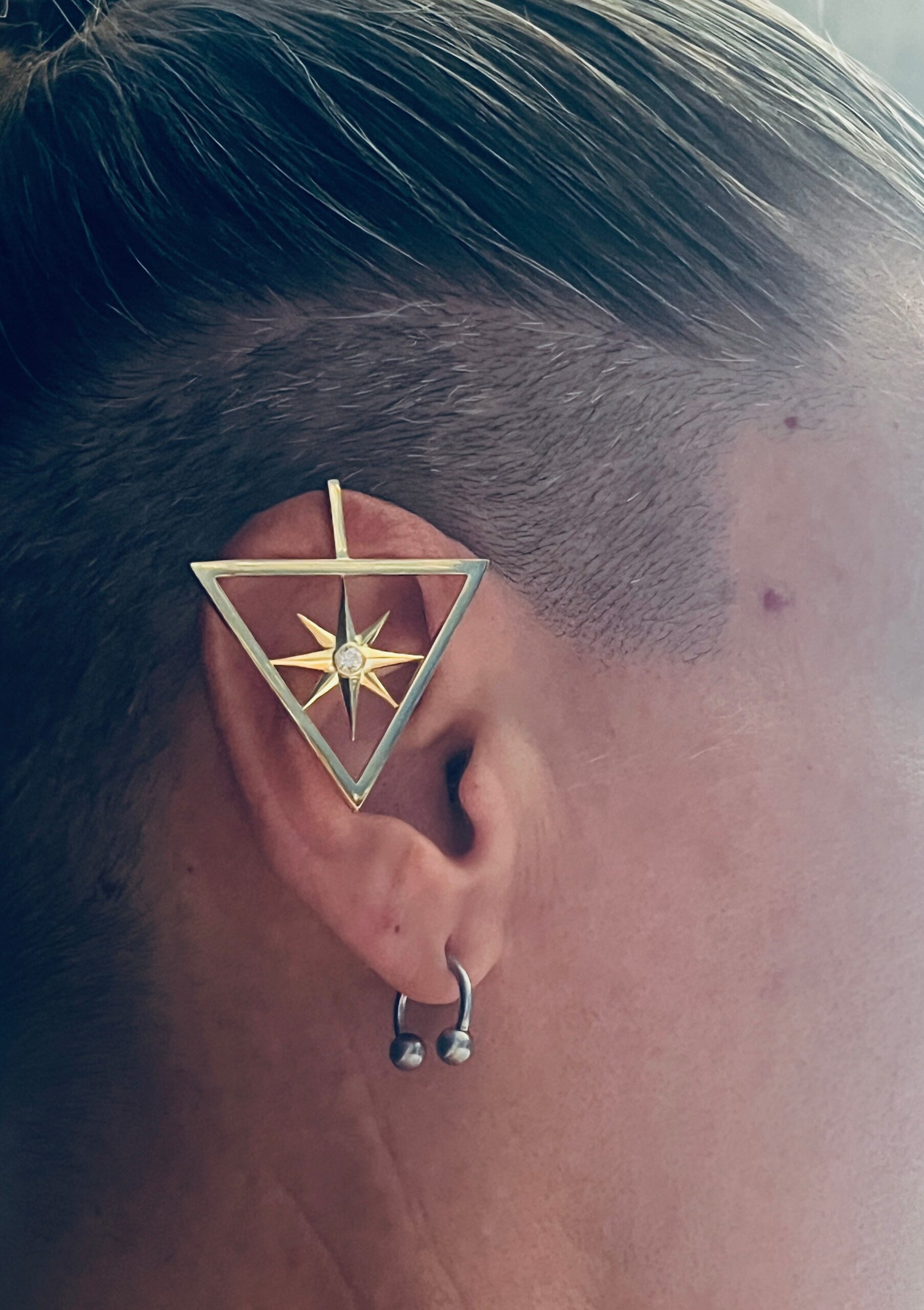 This nautical star ear cuff is a timeless tribute to the courage and heritage of the lesbian community. Inspired by the nautical star tattoos that lesbians wore on the inside of their wrists in the 1950’s and 1960’s to discreetly signify their identity, this ear cuff captures the essence of that brave tradition.