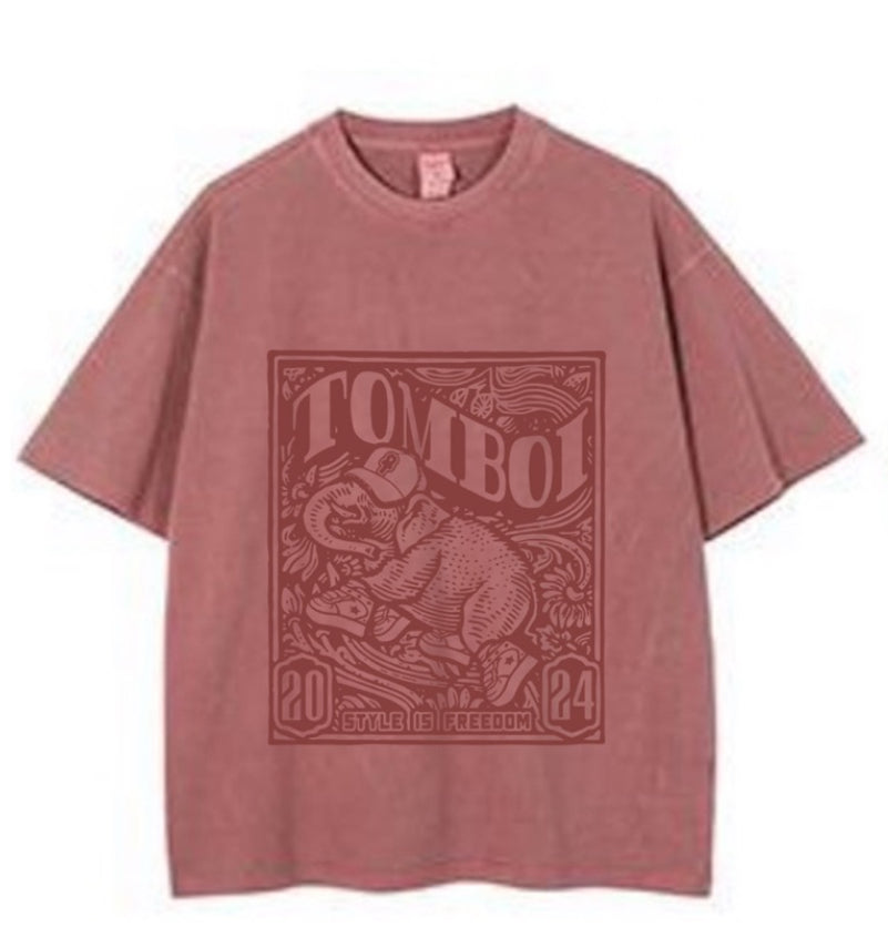 Our TOMBOI Jogger Tee features a new dynamic graphic print from our “Free Yourself” collection printed on a heavyweight cotton tee with a vintage wash. This tee is oversized with a drop shoulder for a longer sleeve. Also available in dusty rose, tan and blue with the shorts to match.